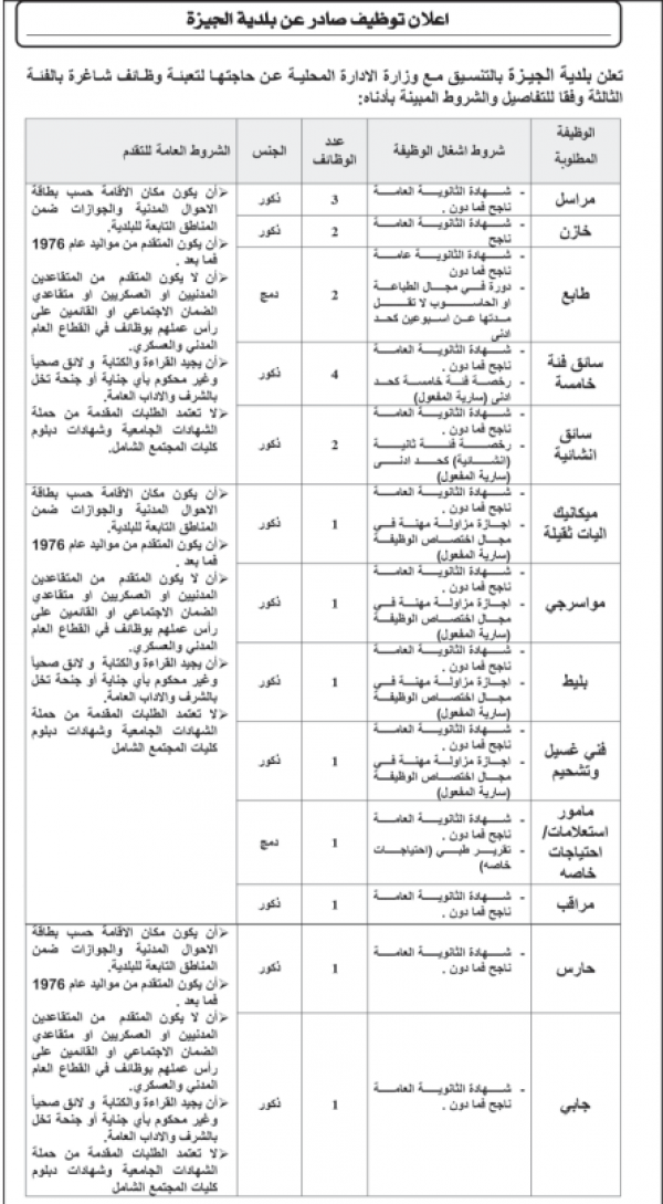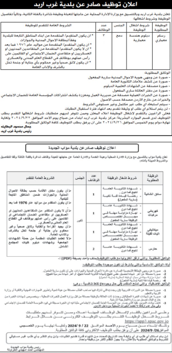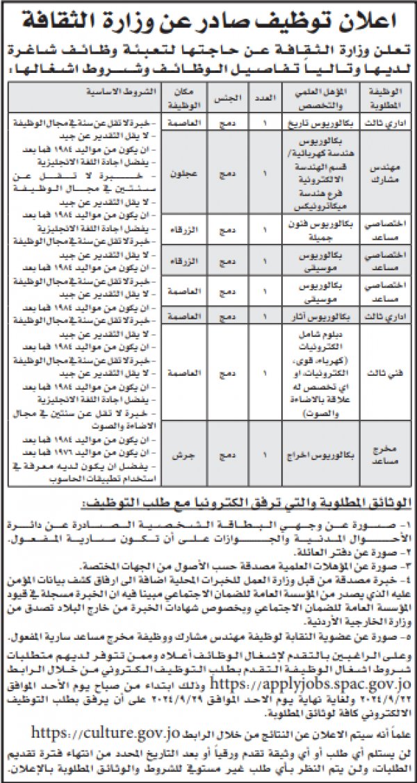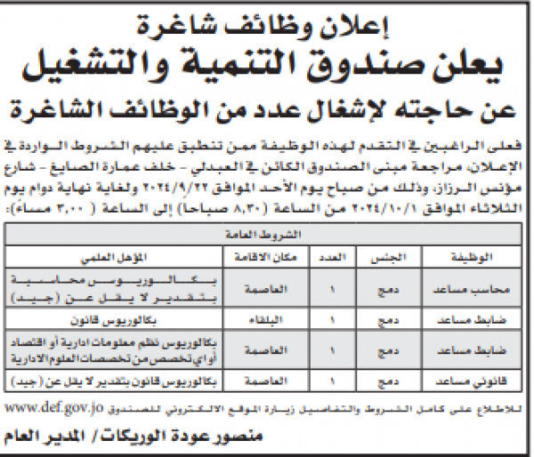 : أعلنت عددا من الوزارات والمؤسسات الحكومية ،اليوم الاحد، عن حاجتها لملء شواغر وظيفية لديها.