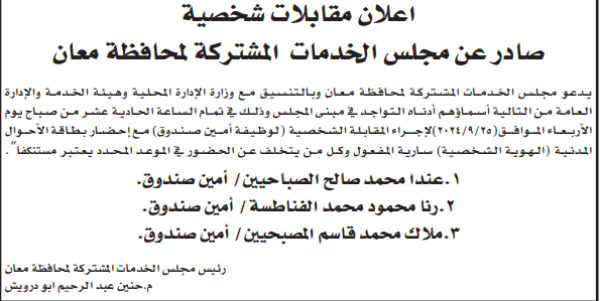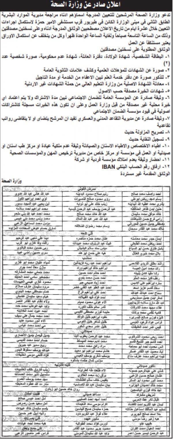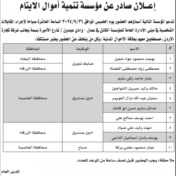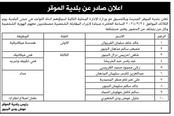 وكما دعت مؤسسات مرشحين للمقابلة الشخصية لاستكمال اجراءات التعيين.