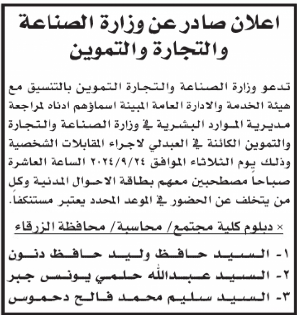 : أعلن ،اليوم الثلاثاء، عن شواغر وظيفية، وكما دعت مؤسسات مرشحين للامتحان التنافسي.