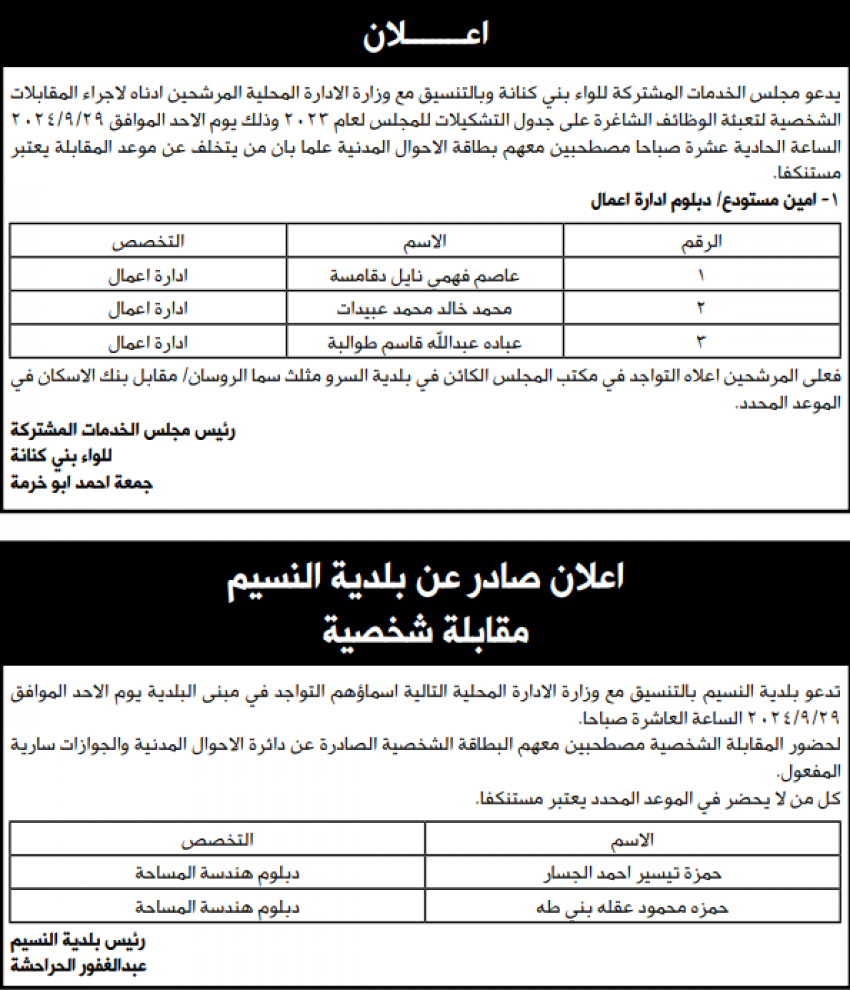 شواغر ومدعوون لاستكمال التعيين (أسماء)