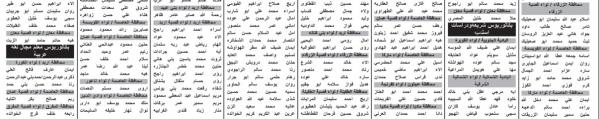 وتاليا الاسماء والمواعيد المحددة: