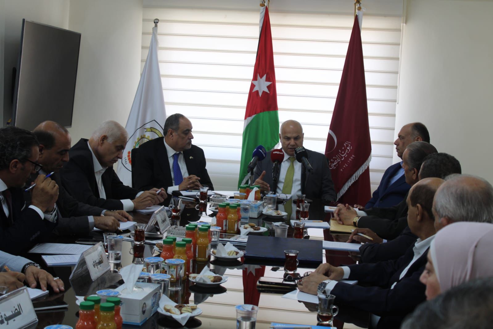 بدوره استعرض رئيس الاتحاد العام لنقابات عمال الأردن خالد الفناطسة كافة مطالب الاتحاد والنقابات العمالية ومنها إعادة النظر بالتعديلات المقترحة على قانوني العمل والضمان الاجتماعي وموضوع الحد الأدنى للأجور، بما يتناسب مع الأوضاع الجارية من ارتفاع تكاليف المعيشة، إضافة إلى تفعيل المادة 13 من قانون العمل التي تنص على صاحب العمل أن يشغل من العمال ذوي الإعاقة النسبة المحددة في قانون حقوق الأشخاص ذوي الإعاقة.