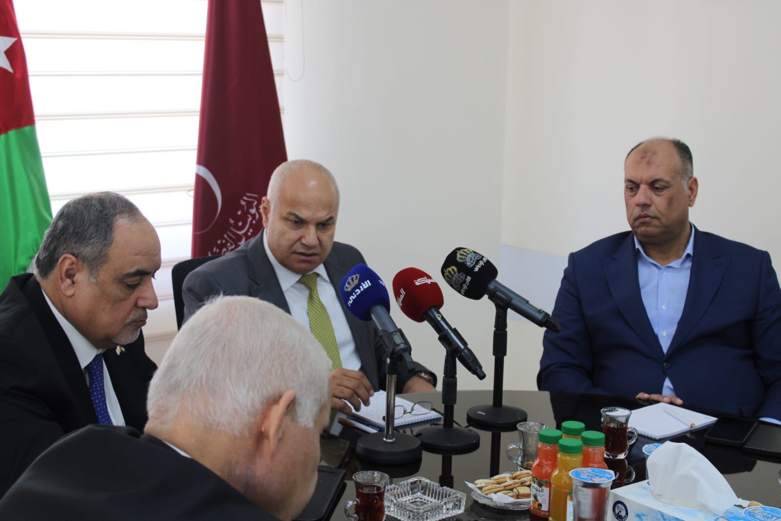وشدد الوزير خلال اللقاء على أن الجميع خلف جلالة الملك عبد الله الثاني والقوات المسلحة والأجهزة الأمنية لحماية أمن واستقرار الأردن، لافتا إلى أن الحكومة تتماهى مع توجهات جلالة الملك بالحفاظ على أمن واستقرار المملكة.