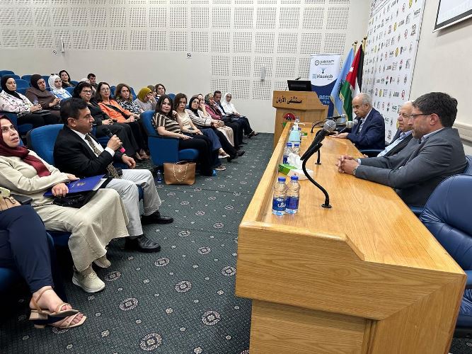 وقدم الدكتور عبدالله البشير شرحاً عن إمكانيات المستشفى بشكل عام وعن نجاحاته الكبيرة في مجال التعليم الطبي والتدريب على المستوى الدولي اضافة إلى دور جامعة  ابن سينا الطبية في هذا المجال لاقتاً إلى ان مستشفى الآردن اليوم يعتبر من اهم المراكز الطبية التعليمية في الشرق الأوسط والمعترف بها عالمياً ومن خلال شراكات استراتيجية مع كبرى الجامعات العالمية مثل جورج واشنطن وتكساس وتوليدو  وغلاسكو.