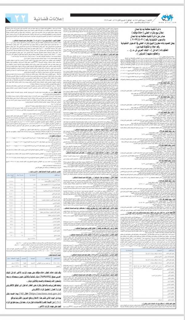 ودعت من يرغب بالدخول في المزاد على العقار الدخول الى الموقع الالكتروني لوزارة العدل خلال 15 يوما من اليوم التالي لنشر الاعلان ودفع لعربون الكترونيا بواقع 10 % من القيمة المقدرة كتأمينات دخول للمزاد .