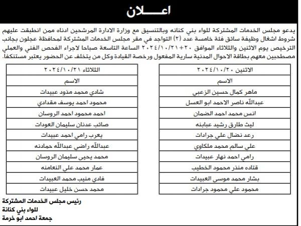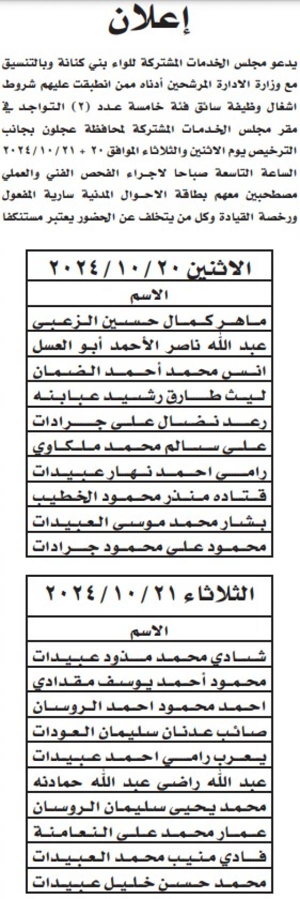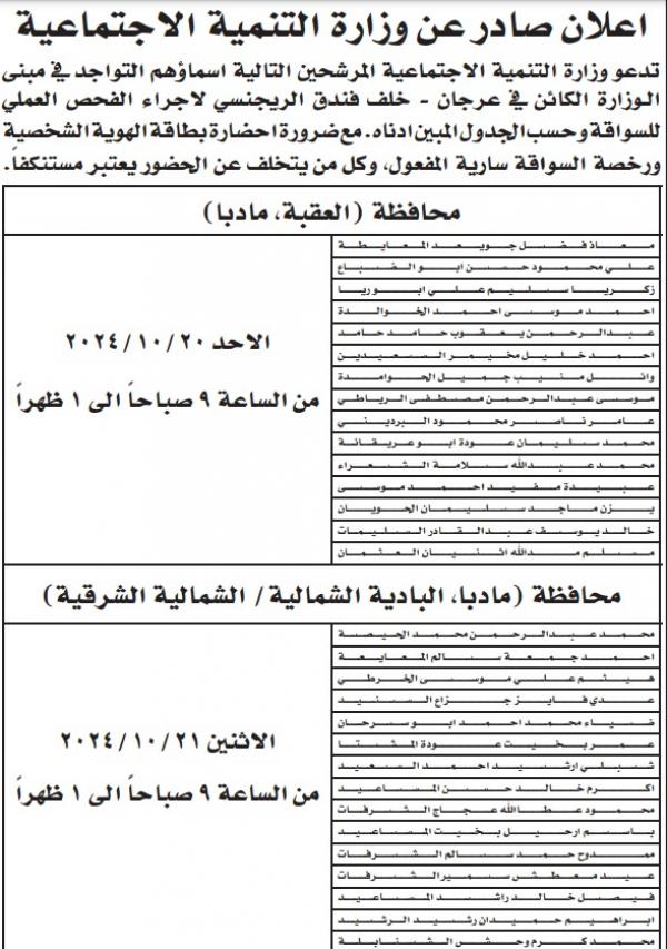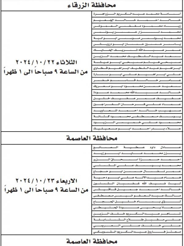 : دعت عدد من الوزارات والمؤسسات الرسمية والبلديات ومجالس الخدمات اليوم الثلاثاء، مرشحين لاستكمال إجراءات التعيين وحضور الامتحان التنافسي.