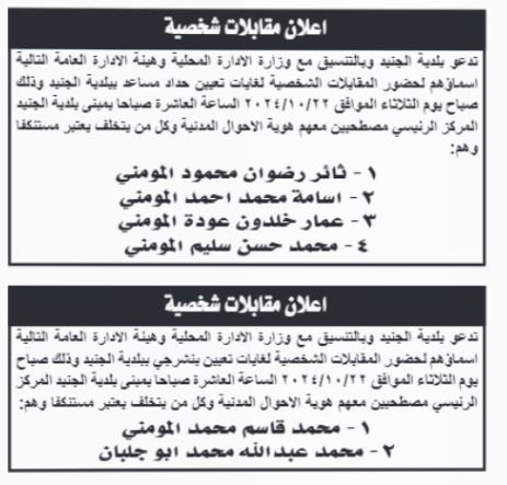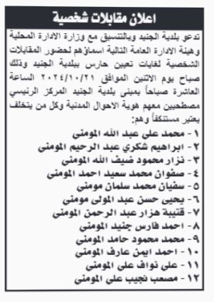 مدعوون لإجراء مقابلات شخصية وحضور الامتحان التنافسي (أسماء)