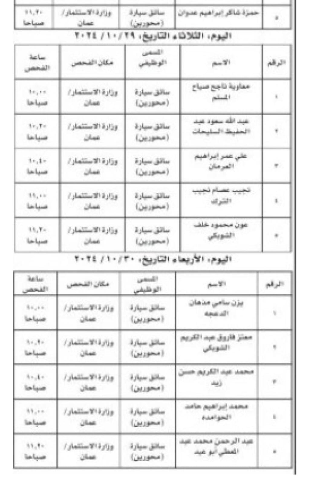 وكما دعت وزارة الاستثمار مرشحين لحضور الفحص الفني لوظيفة سائق.