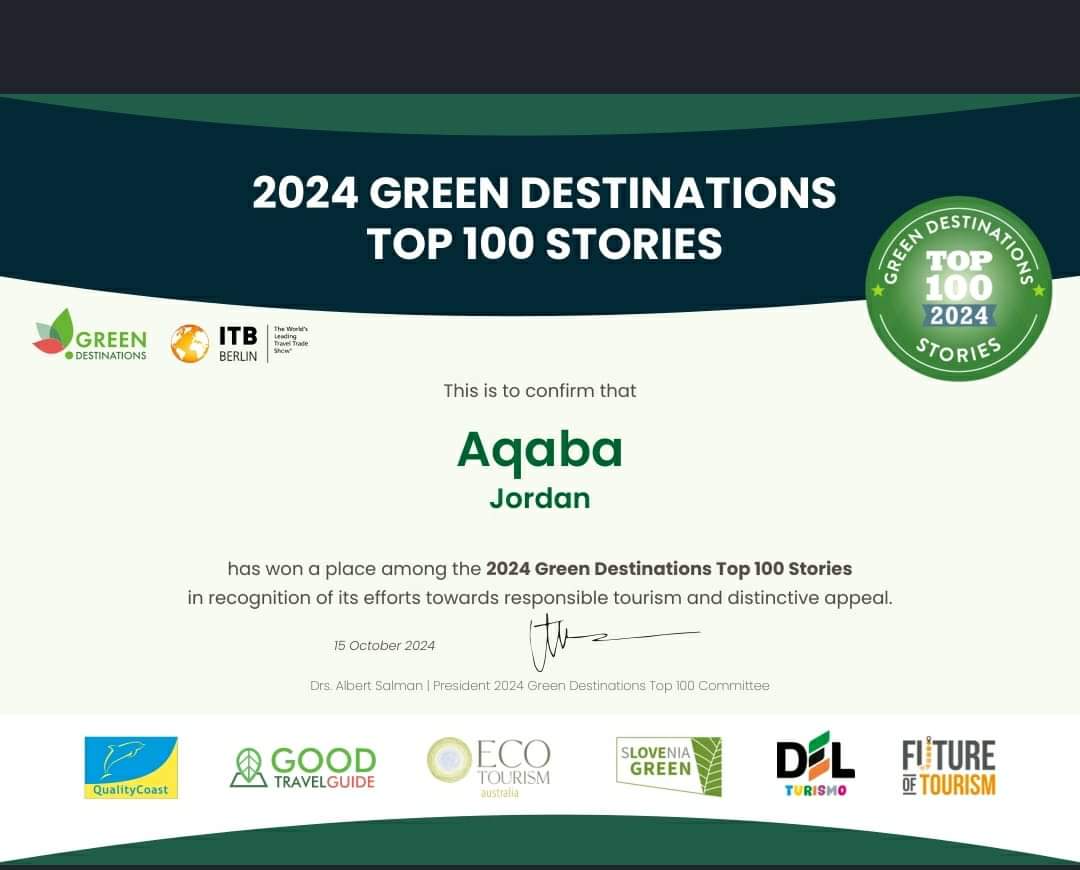 منطقة العقبة الاقتصادية الخاصة تحقق إنجازًا بارزًا بفوزها في مسابقة"أفضل 100 قصة من الوجهات الخضراء”