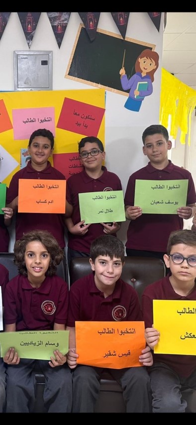 ونظمت المدرسة انتخابات المجلس لإيمانها أن العملية التعليمة تهدف إلى اعداد جيل واع قادر على التعبير عن رأيه واحترام الرأي الآخر ويتمتع بأسمى معاني الوطنية و الانتماء.