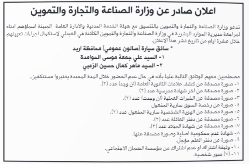 بالأسماء ... وظائف شاغرة ومدعوون لاستكمال اجراءات التعيين