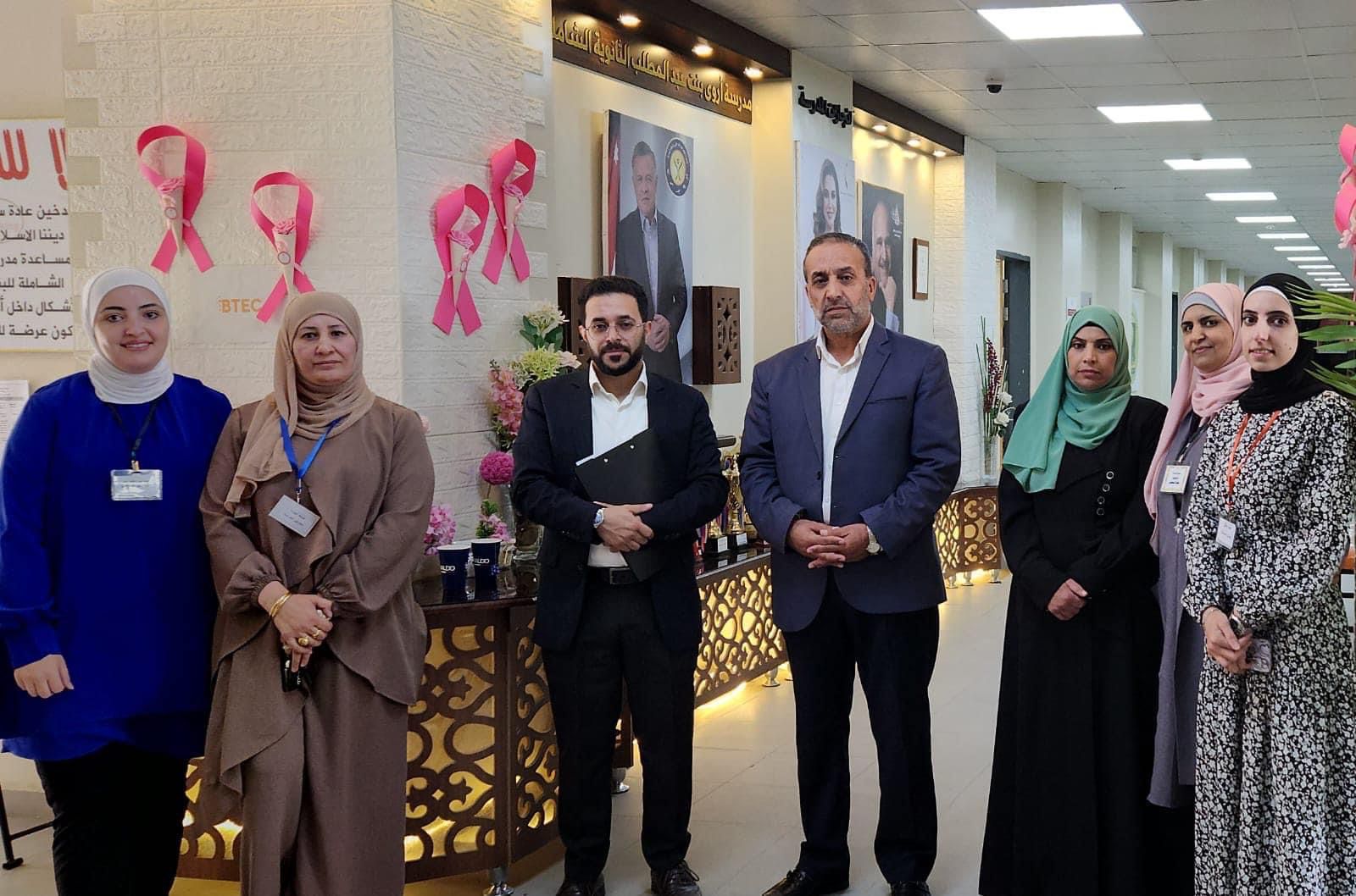 مندوباً عن مدير التربية والتعليم لمنطقة الكرك استقبل مدير الشؤون التعليمية الاستاذ نضال الفتينات ورئيس قسم التعليم المهني المهندسة فدوى الرولة مندوب شركة بيرسون لتخصص الفن والتصميم الدكتور حمزة بني ملحم ، ومنسقة برنامج الفن والتصميم في وزارة التربية والتعليم الدكتوره ايه عثامنه في مدرسة أروى بنت عبد المطلب الثانويه الشامله للبنات .