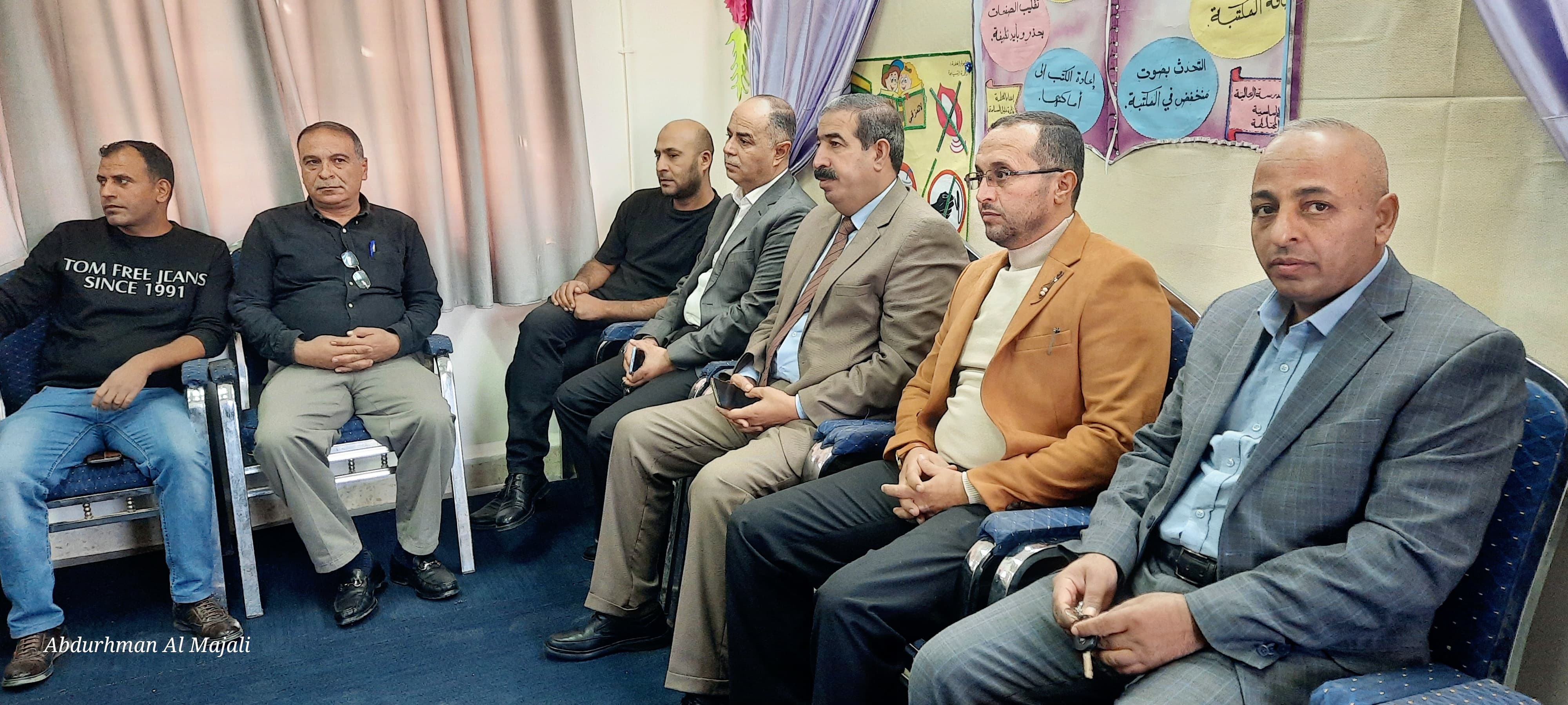 من المديرية الدكتور عماد أبو سمهدانه وعدد من مديري ومديرات مدارس قضاء الموجب  والمشرف التربوي السيد ساطح الحروب .