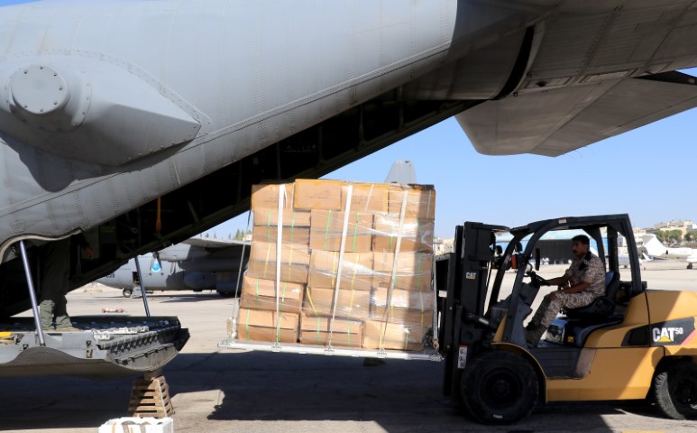 وتحمل الطائرة التي أرسلتها القوات المسلحة الأردنية بالتنسيق مع الهيئة الخيرية الأردنية الهاشمية مواد غذائية وإغاثية وأدوية ومستلزمات طبية.