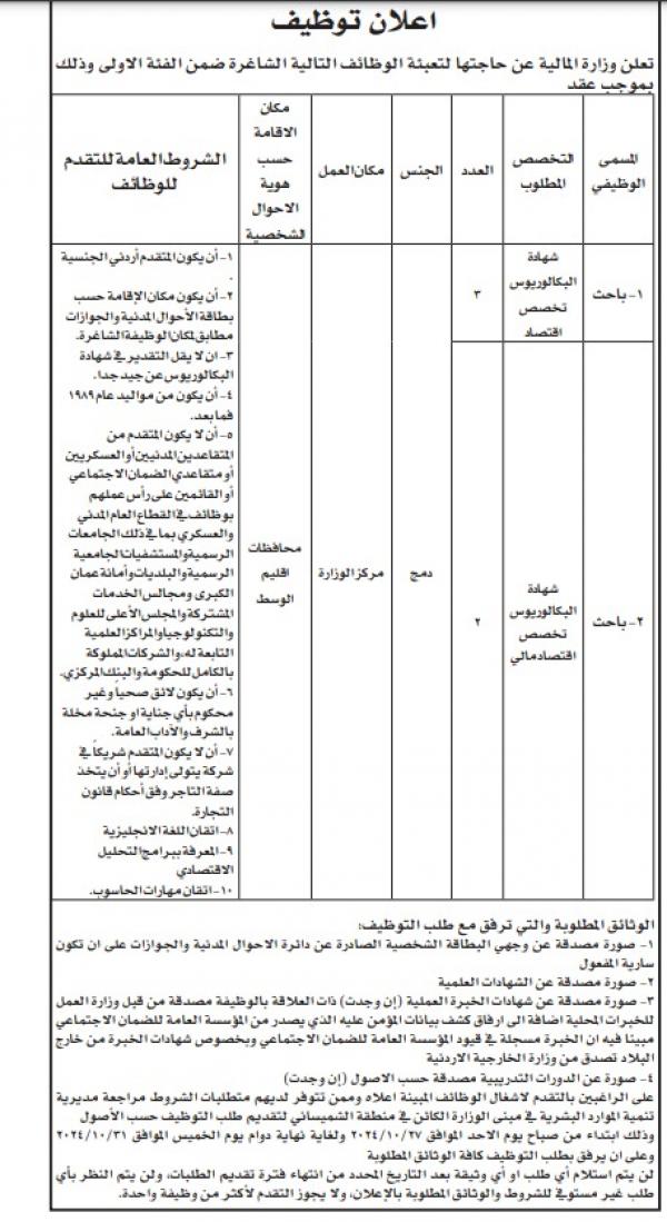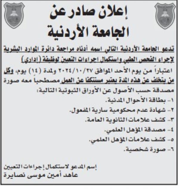 : أعلنت عددا من الوزارات والمؤسسات الرسمية، اليوم الخميس، عن حاجتها لتعبئة وظائف شاغرة، فيما دعت عددا من المرشحين لاستكمال اجراءات التعيين.