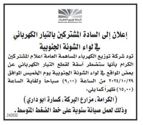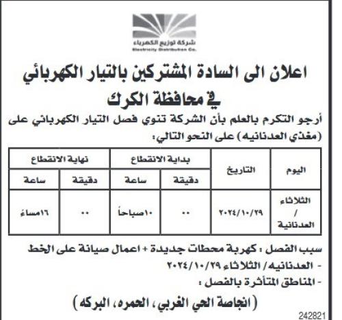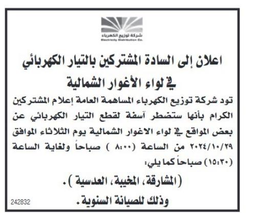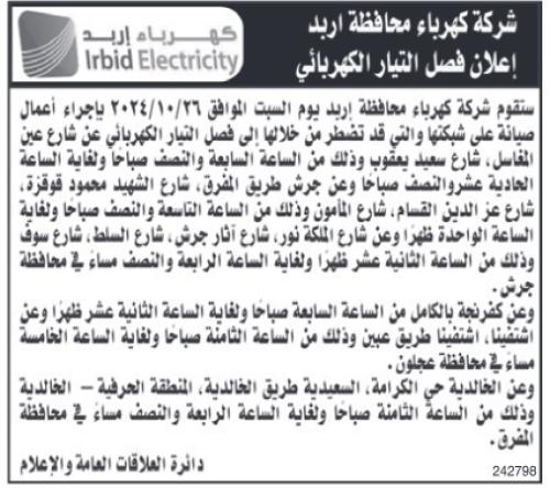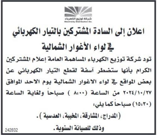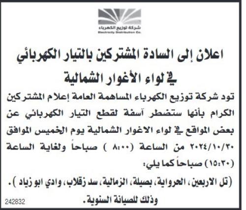 وذكرت الشركات المناطق المتضررة من الفصل، والأيام المحددة لذلك، وفقًا لكل إعلان مرفق أدناه: