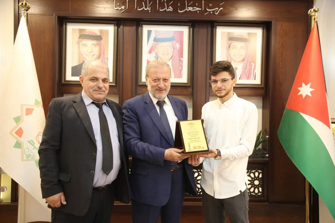 لإتمامه حفظ القرآن الكريم...رئيس بلدية اربد الكبرى "الكوفحي " يكرم أحد طلبة جامعة اليرموك