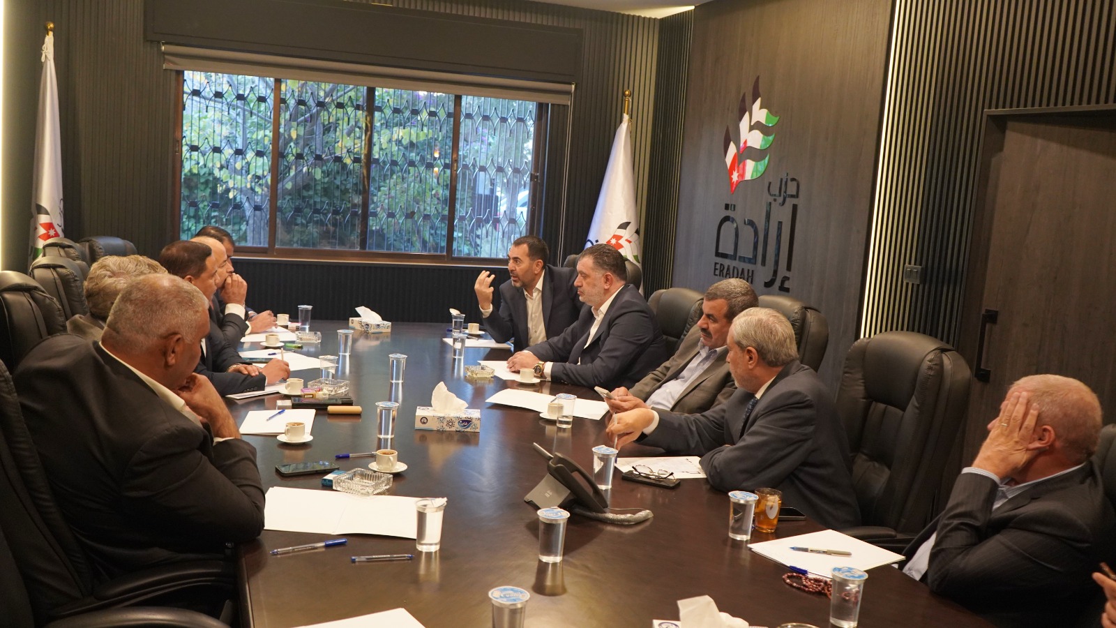 عقد المفوضين عن كتلة حزب إرادة والوطني الإسلامي إجتماعات مكوكية اليوم وبحضور الأمين العام لحزب إرادة نضال البطاينة (والذي ستصبح إستقالته كأمين عام نافذة نهاية الشهر الجاري) والأمين العام للحزب الوطني الإسلامي د. مصطفى العماوي، حيث إستهلت الكتلة إجتماعاتها مع المفوضين عن كتلة جبهة العمل الإسلامي ثم مع المفوضين عن تحالف الأحزاب الوسطية وأخيرا مع المفوضين عن كتلة حزب عزم ومن المتوقع أن إجتماعات اليوم سيكون لها أثر كبير في مشهد الكتل الحزبية والمكتب الدائم واللجان تحت القبة.