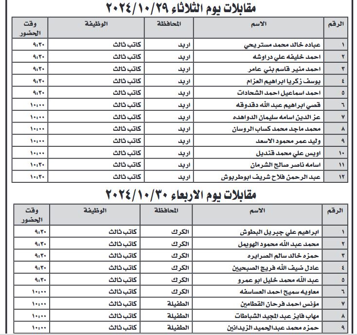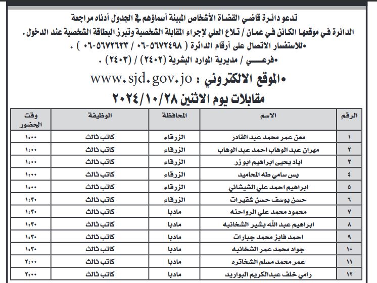 أعلنت عدداً من المؤسسات الرسمية، اليوم الأحد، عن حاجتهم لتعبئة وظائف شاغرة، فيما دعت عددا من المرشحين لاجراء المقابلات الشخصية .
