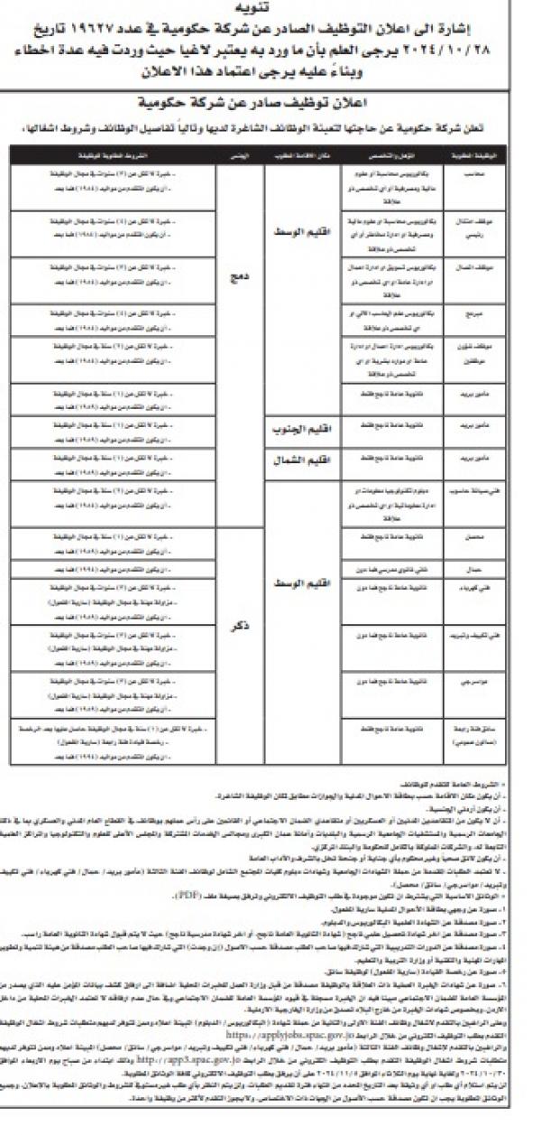 : أعلنت عدداً من المؤسسات الرسمية، الثلاثاء، عن حاجتهم لتعبئة وظائف شاغرة، فيما دعت عددا من المرشحين للامتحان التنافسي وأخرى لاجراء المقابلات الشخصية لغاية استكمال اجراءات التعيين .