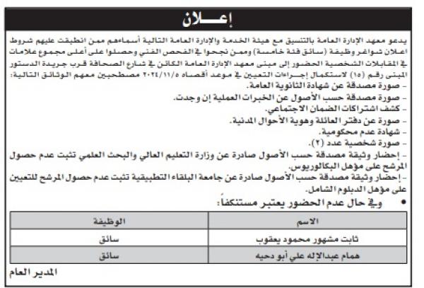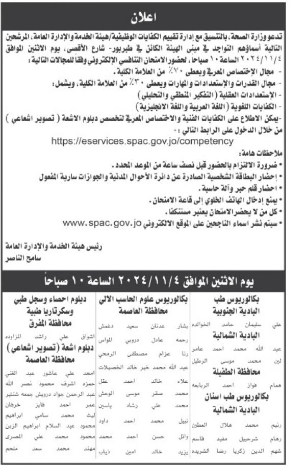 شواغر ومدعوون للمقابلة والامتحان التنافسي