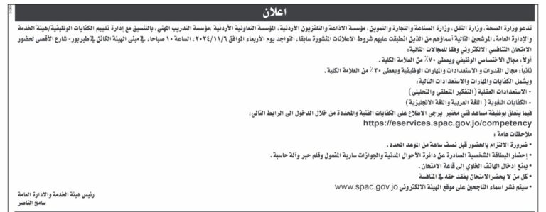 : أعلنت عدداً من الوزارات والمؤسسات الرسمية، اليوم الأربعاء، عن حاجتهم لتعبئة وظائف شاغرة، فيما دعت عددا من المرشحين لحضور الامتحان التنافسي واستكمال اجراءات التعيين.