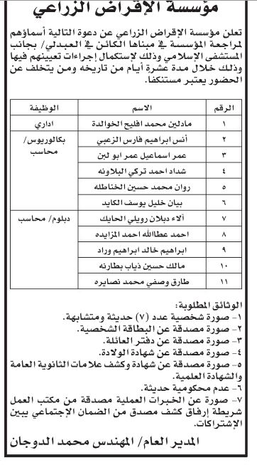وظائف شاغرة ومدعوون لاستكمال اجراءات التعيين (أسماء)