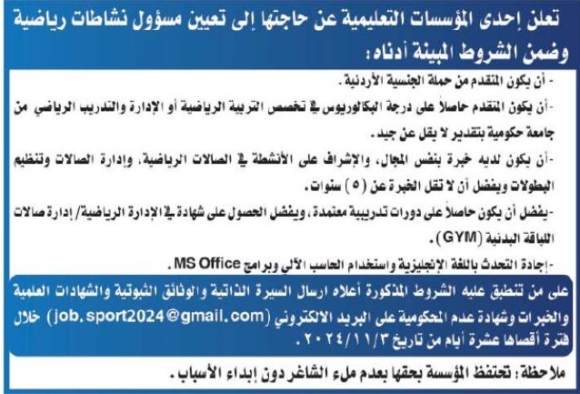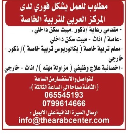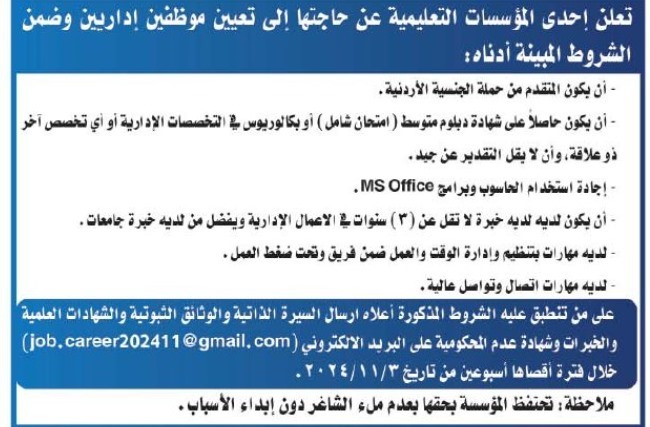 اعلنت دوائر حكومية وخاصة عن وظائف شاغرة في العديد من المجالات من حاملي درجة الماجستير والبكالوريوس والدبلوم وغيره