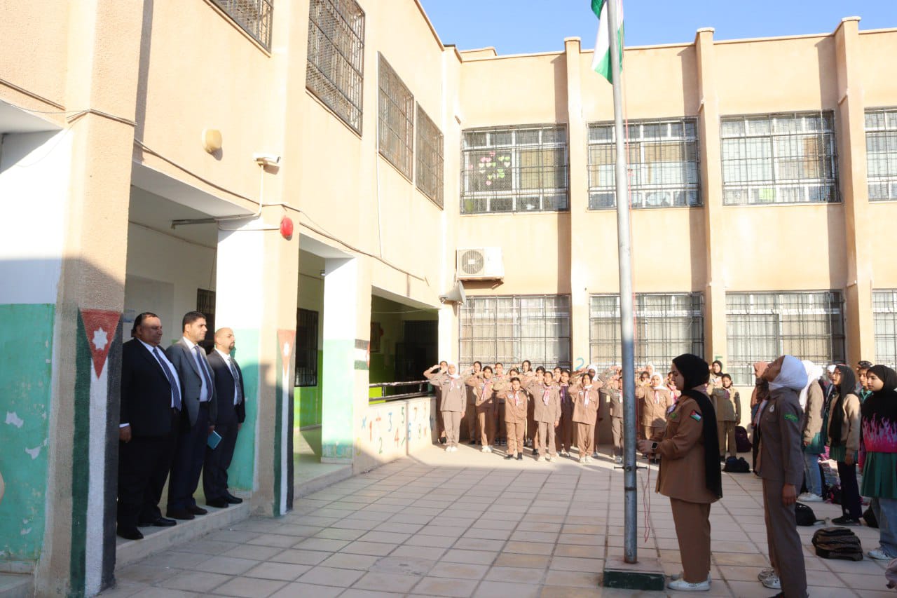 محافظ المفرق يشارك طلبة مدرسة الكرامة ال فعاليات الطابور الصباحي