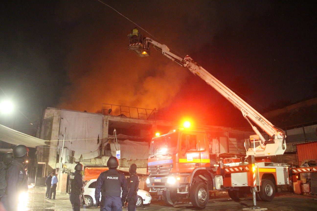 الدفاع المدني يخمد حريقاً داخل سوق "البالة" في محافظة إربد ...صور