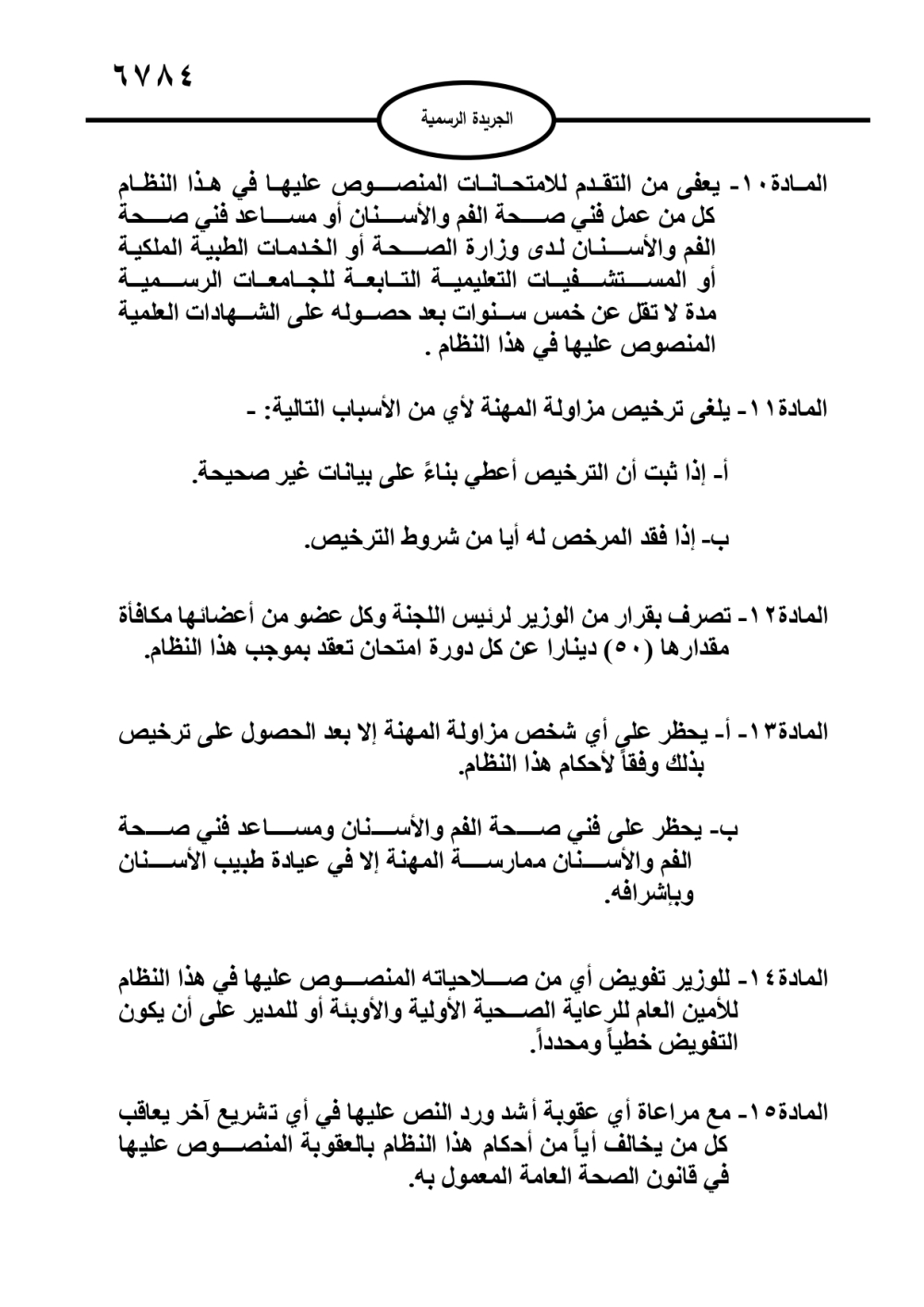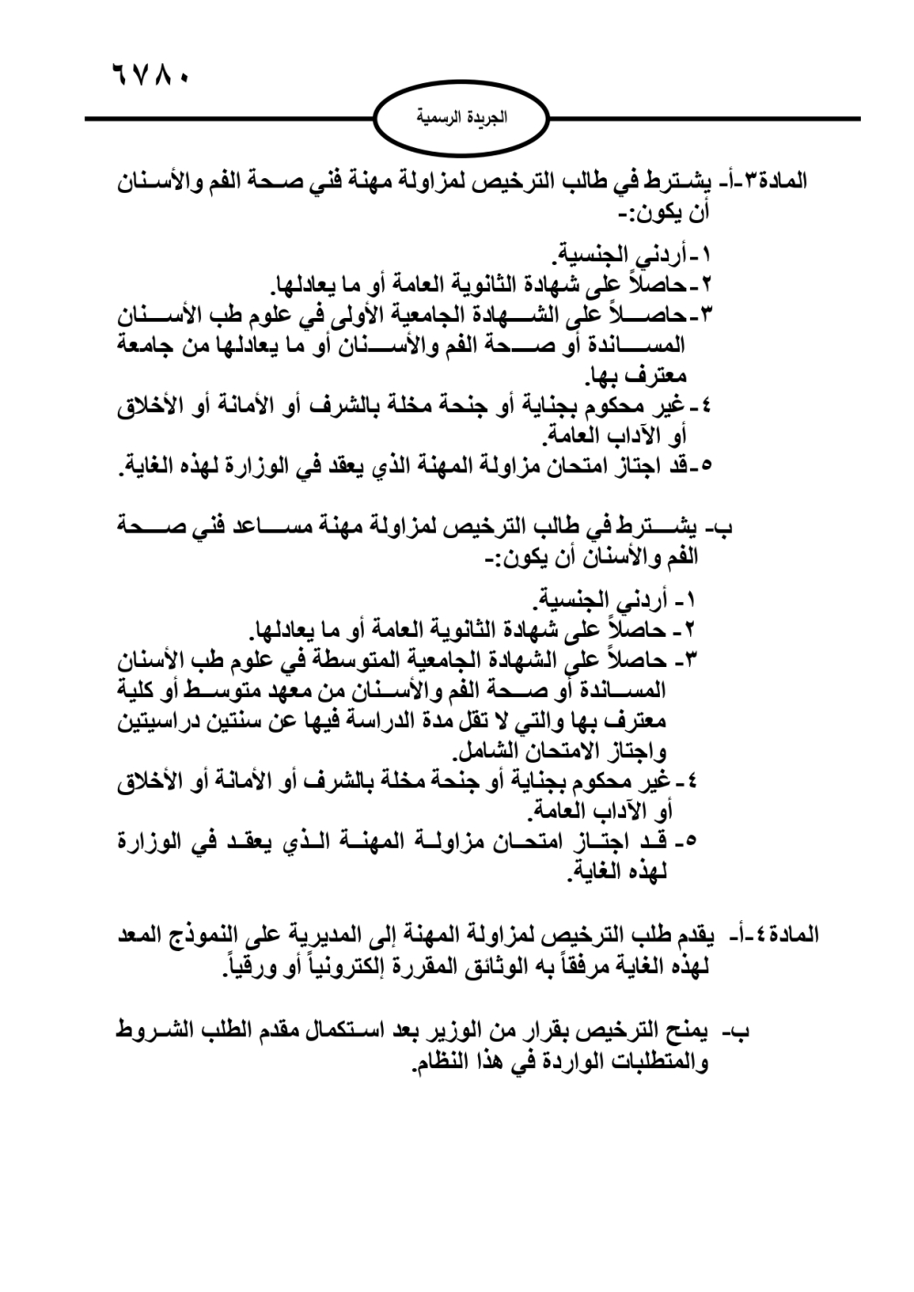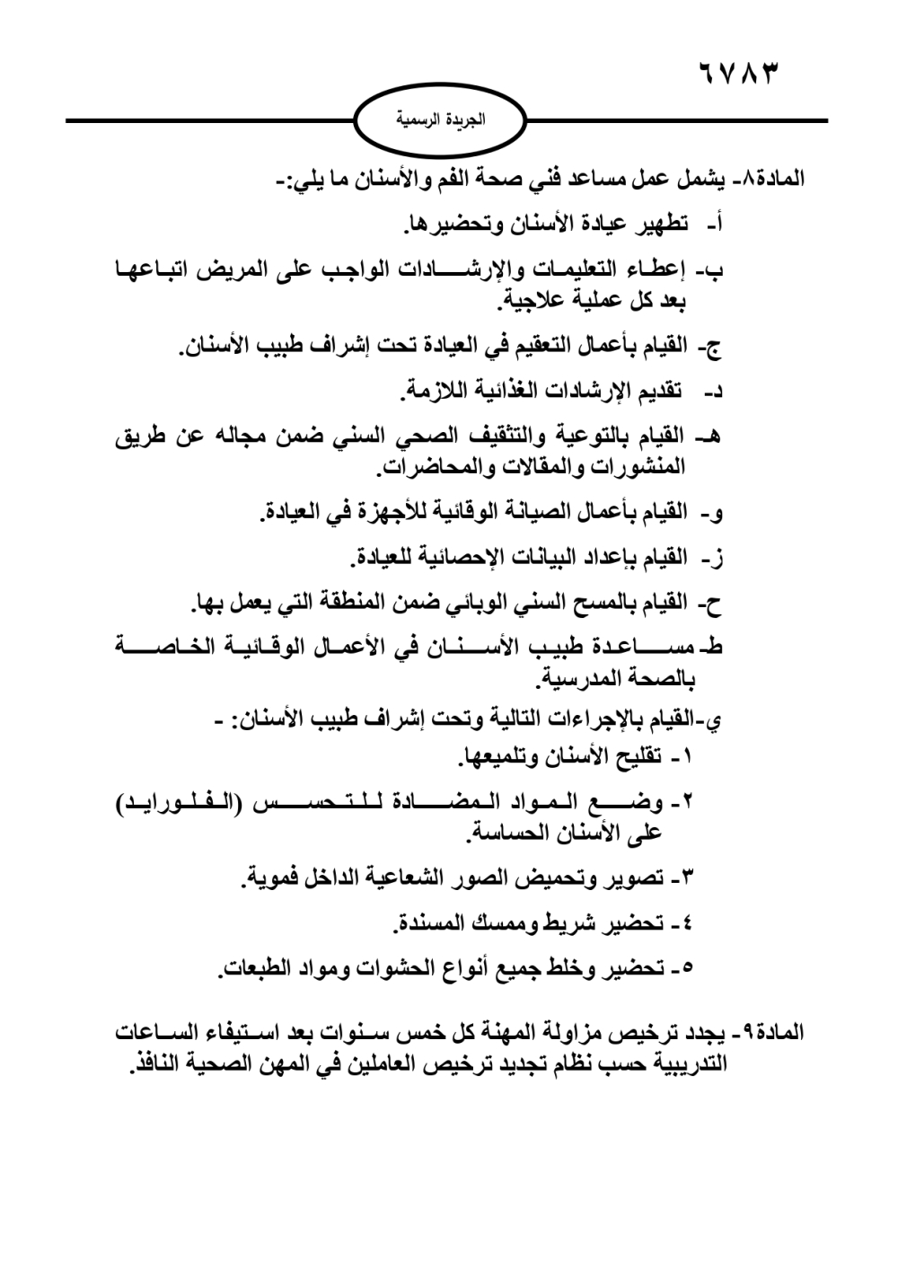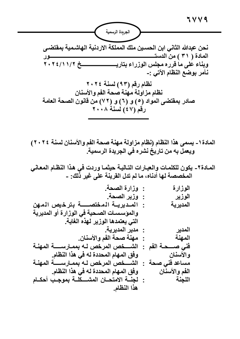 صدر في الجريدة الرسمية، الأحد، نظام مزاولة مهنة صحة الفم والأسنان رقم (93) لسنة 2024. وتاليا نص النظام.
