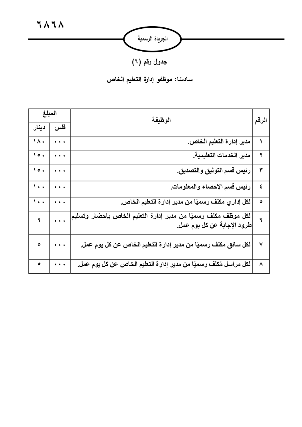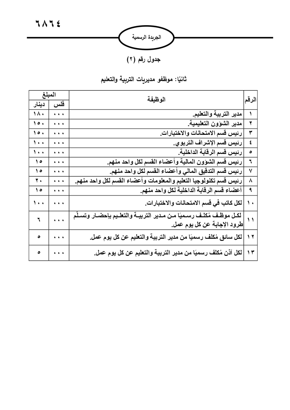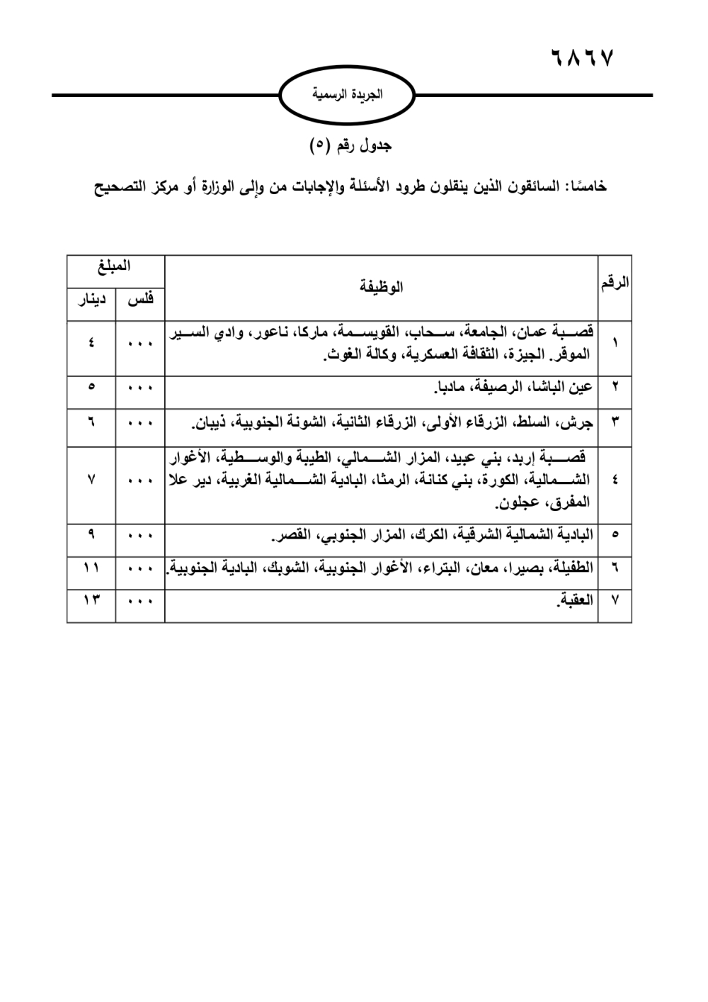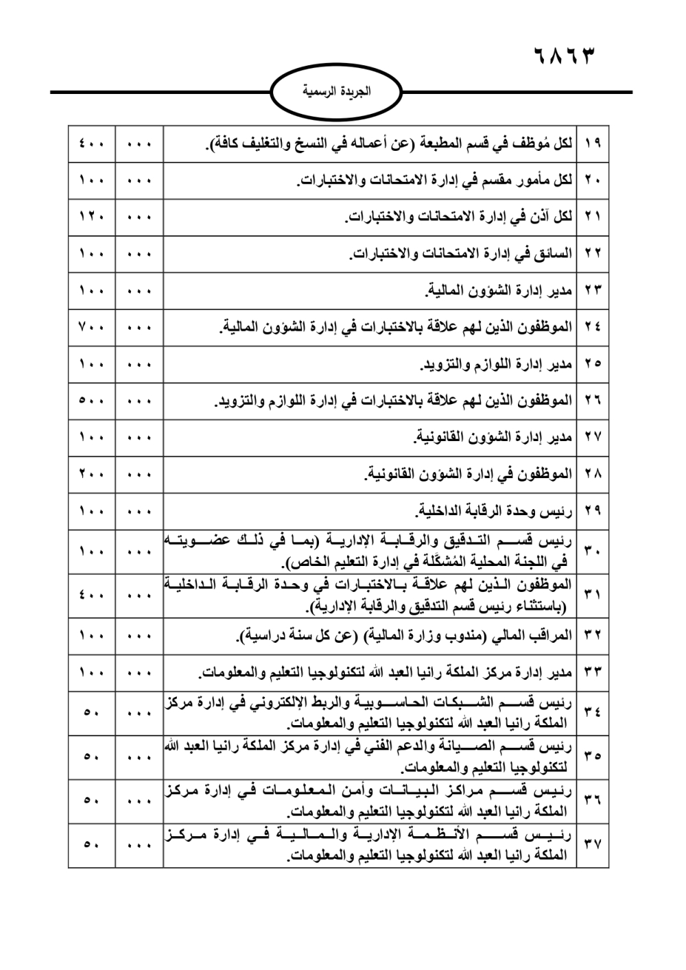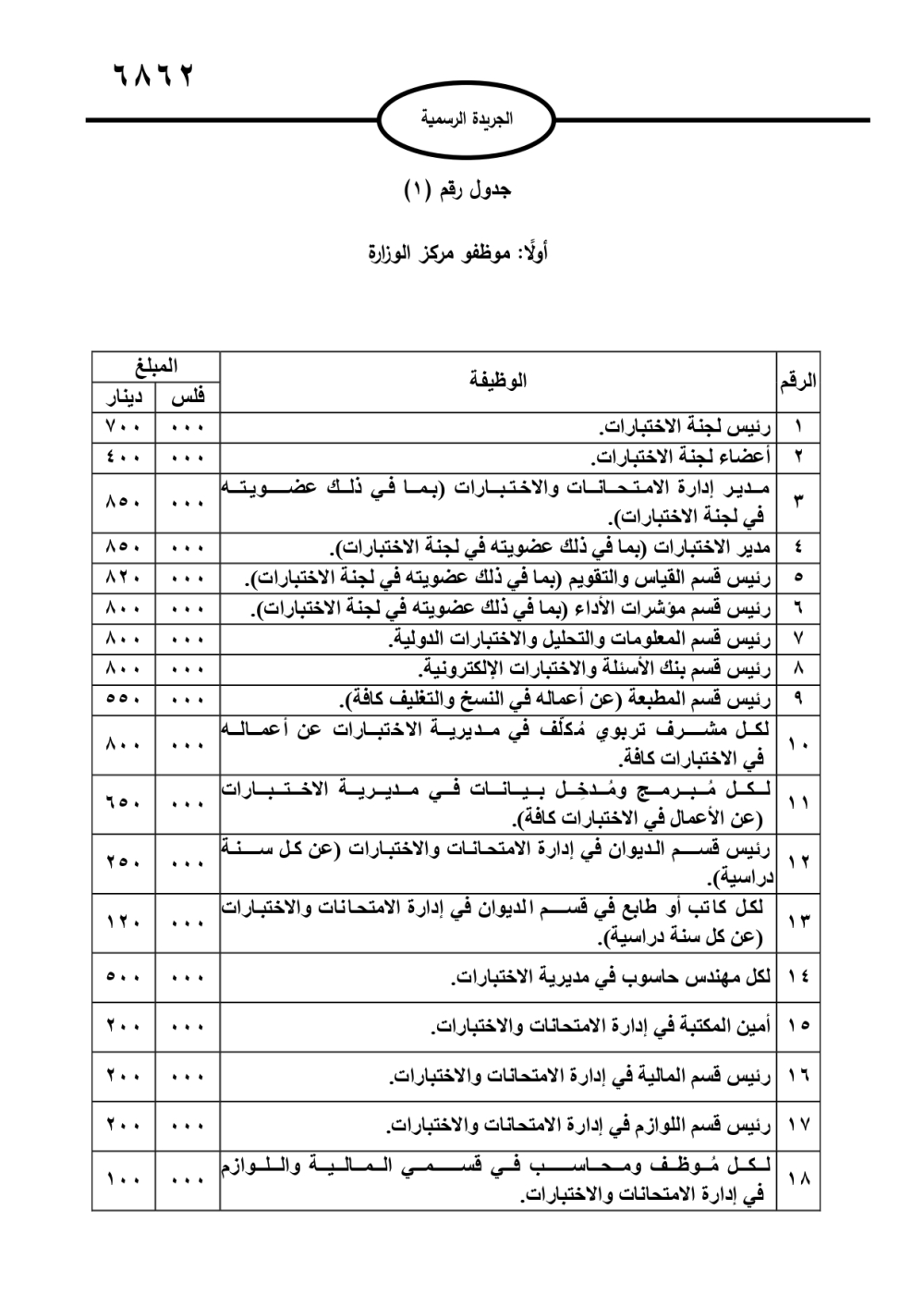 صدر في الجريدة الرسمية، الأحد، تعليمات أجور العاملين في الاختبارات رقم (11) لسنة 2024. وتاليا نص التعليمات:
