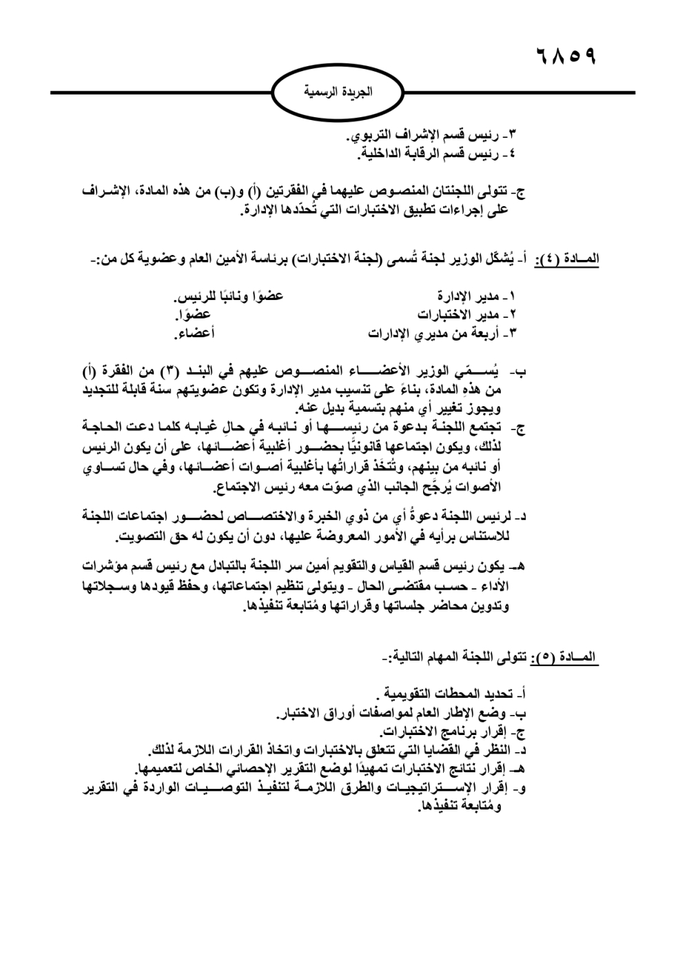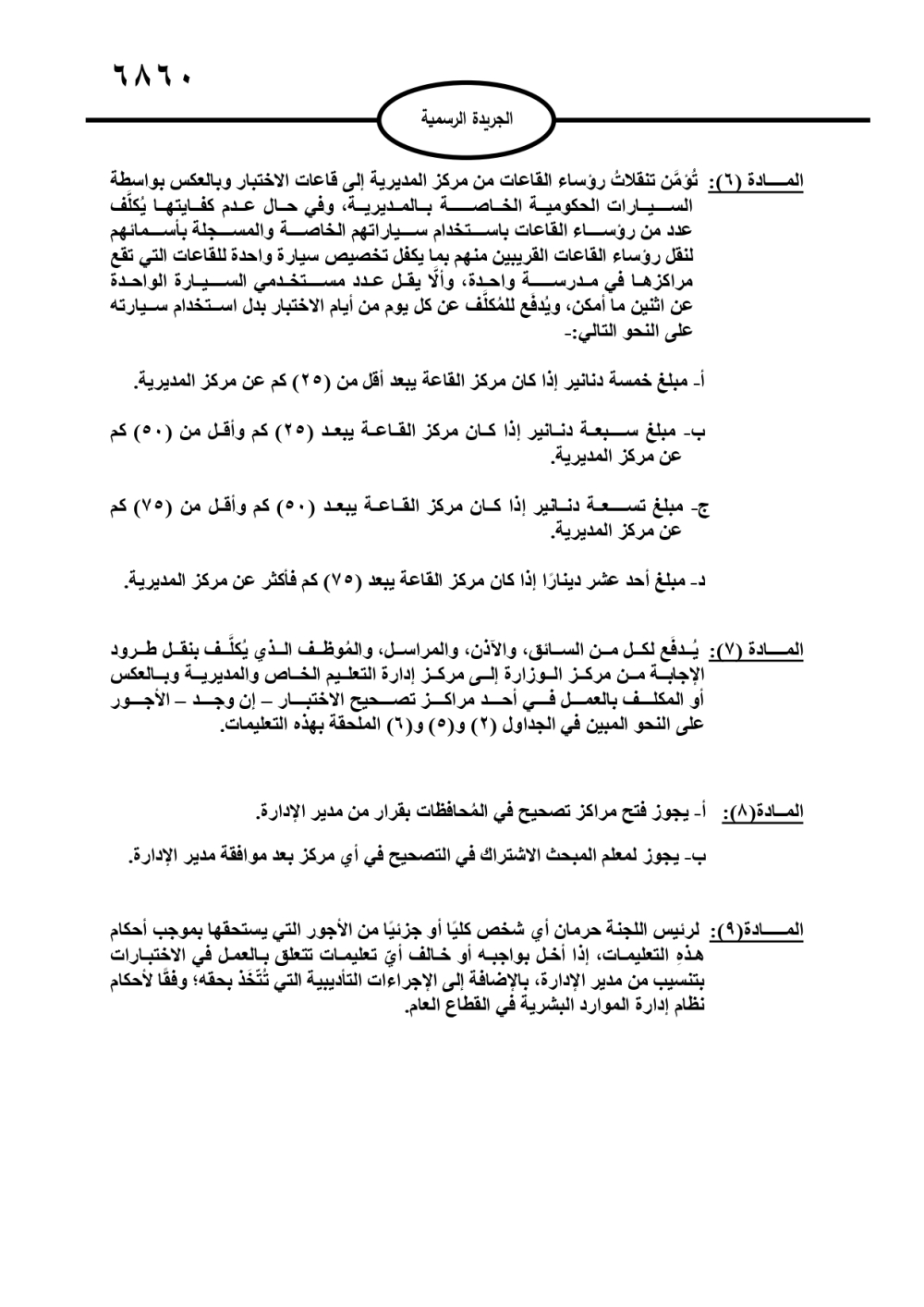 تعليمات أجور العاملين في الاختبارات (نص التعليمات)