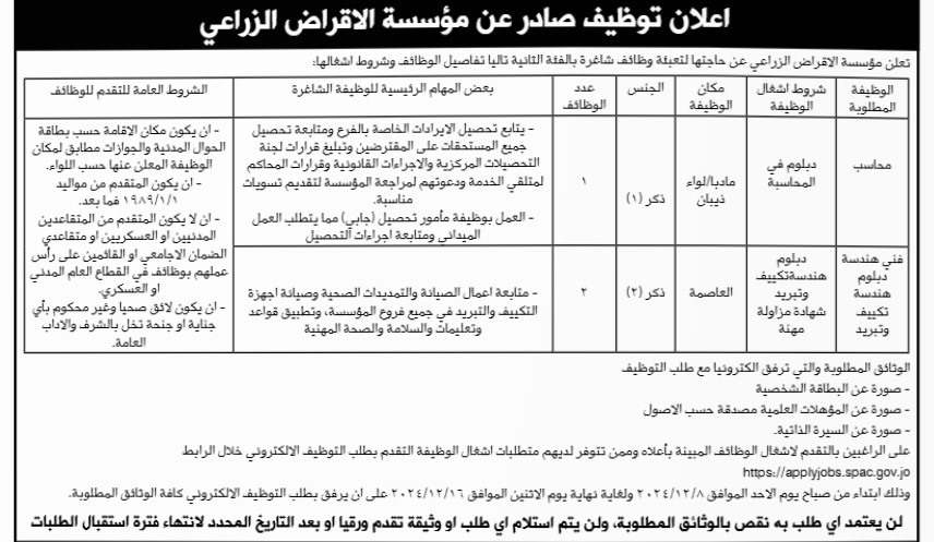 اعلنت دوائر حكومية عن فرص عمل لحاملي شهادة الدبلوم والبكالوريوس .