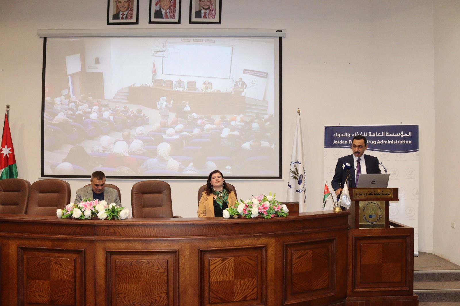 أكد مدير عام المؤسسة العامة للغذاء والدواء الأستاذ الدكتور نزار محمود مهيدات أن آفة المخدرات جريمة تمس أمن الوطن وصحة أبنائه، وأن مكافحتها تستدعي تضافر جهود كافة المؤسسات الوطنية لدعم الجهود الكبيرة المبذولة من قبل مديرية الأمن العام ممثلة بإدارة مكافحة المخدرات وكافة الأجهزة الأمنية والتي تعمل مرتباتها باحترافية للحفاظ على أمن الوطن ومواجهة مروجي ومهربي المخدرات واحباط محاولات إدخالها ونشر التوعية من خلال ضباطها المختصين.