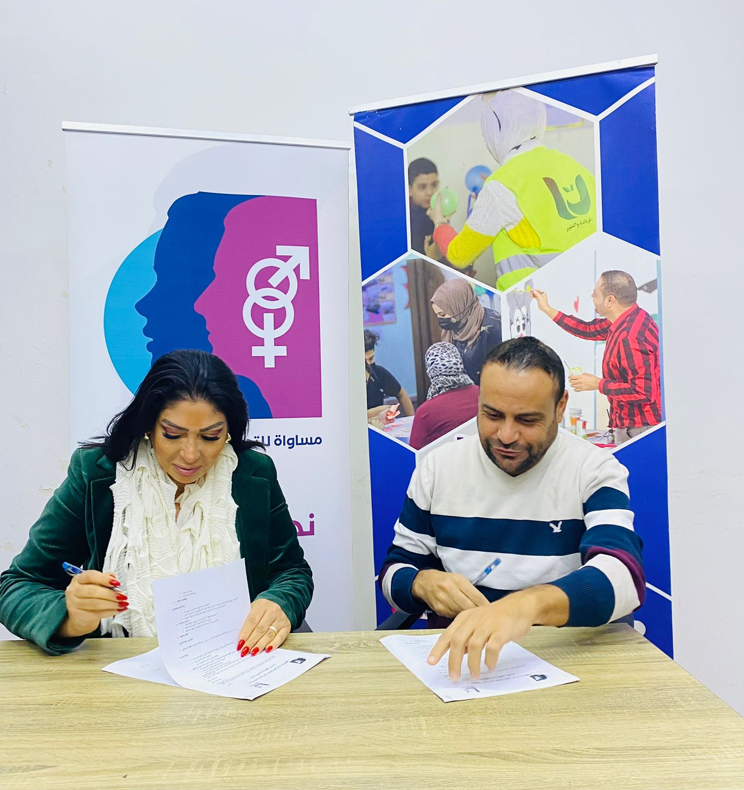 - وقعت مؤسسة مساواة للتدريب وحقوق الإنسان، ممثلة بمديرتها العامة الدكتورة هبة حدادين، شراكة استراتيجية مع جمعية تحفيز للريادة والتطوير في محافظة إربد، ممثلة برئيس الجمعية الأستاذ أحمد شتيات.، في إطار التزامها بالمسؤولية المجتمعية لتعزيز التنمية المستدامة في المجتمعات المحلية، تهدف هذه الشراكة، الأولى من نوعها، إلى تعزيز التعاون المشترك في خلق بيئة ريادية حاضنة في المجتمع الأردني، وتنفيذ مبادرات ومشاريع مشتركة تساهم في دفع عجلة التنمية المستدامة في الأردن.