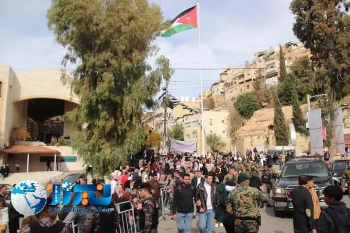 تجمهر عدد كبير من أهالي البلقاء لاستقبال جلالة الملك عبد الله الثاني الذي وصل مدينة السلط الثلاثاء يرافقه سمو الأمير الحسين بن عبدالله الثاني، ولي العهد، بمناسبة اليوبيل الفضي.