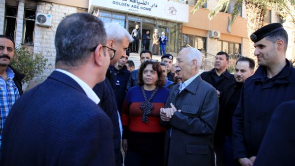 بتوجيهات من جلالة الملك عبدالله الثاني، اطمأن رئيس الديوان الملكي الهاشمي يوسف حسن العيسوي، على الوضع الصحي للمصابين الذين يرقدون على سرير الشفاء في مستشفى البشير ومستشفى جميل التوتنجي، إثر حادثة الحريق في دار الضيافة للمسنين التابعة لجمعية الأسرة البيضاء، بمنطقة الجويدة في العاصمة عمان.