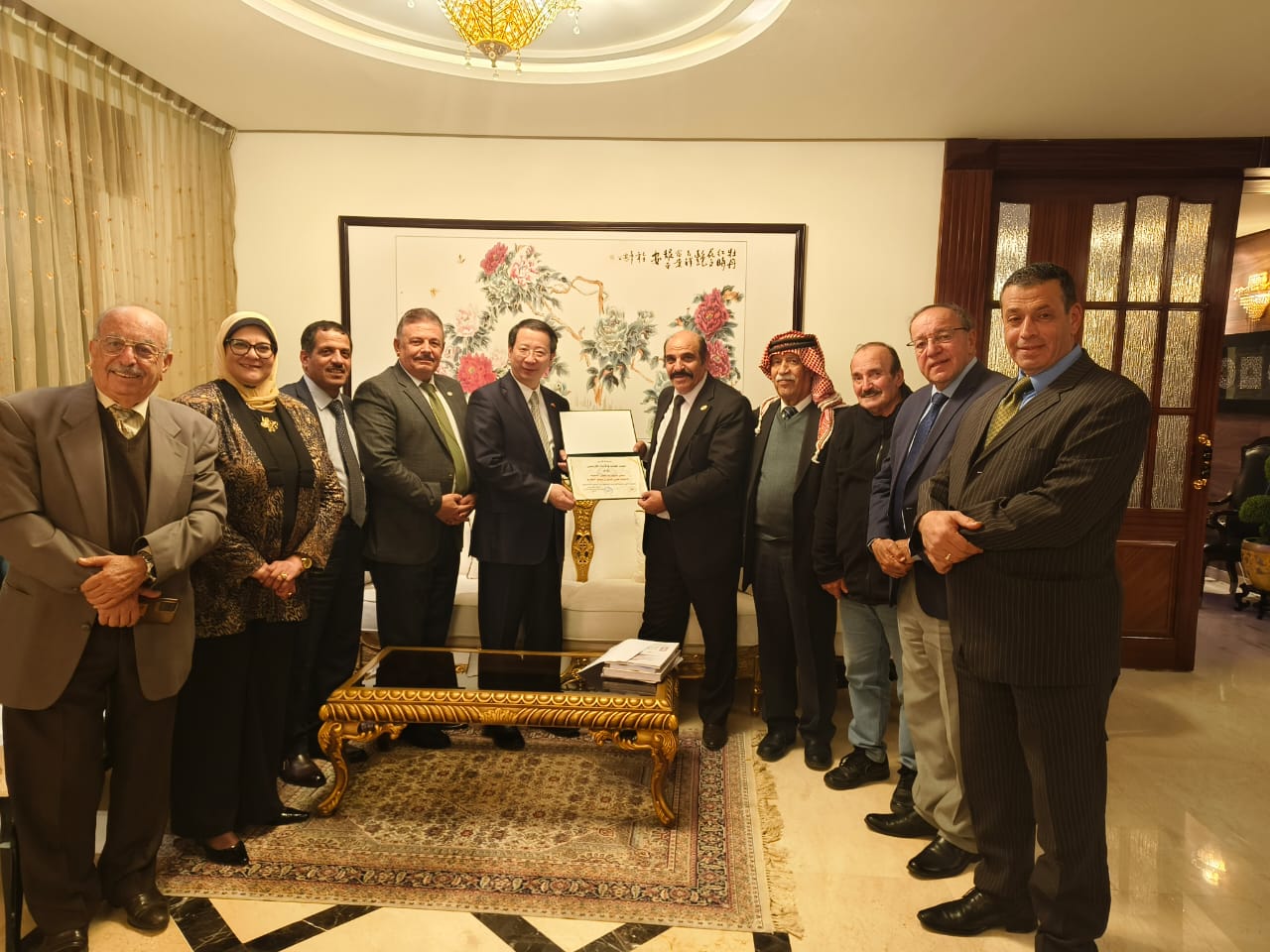 بدعوة كريمة من سعادة الاستاذ تشن تشوان دونغ سفير جمهورية الصين الشعبية احتفاءً وتقديرا للدور الفاعل الذي قدمه الشاعر عليان موسى العدوان رئيس اتحاد الكتاب والأدباء الاردنيين في مؤتمر الشعر الصيني العربي الذي عقد في هانغتشو و بكين في الفترة  ٢٣نوفمبر والى ١ديسمبر . وبناء على الفعل الثقافي المميز أثناء المؤتمر  فقد أثنى وشكر سعادة السفير  الشاعر  العدوان أثناء مأدبة العشاء التي أقامها في منزله بهذه المناسبة  بحضور الملحق الثقافي الصيني ورحب بحضور  أعضاء الهيئة الإدارية لاتحاد الكتاب مثمنا الدور الثقافي الذي يقدمه الاتحاد على الساحة الثقافية المحلية والخارجية