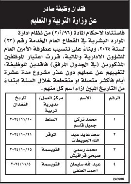 فاقدون لوظائفهم في وزارة التربية (أسماء)