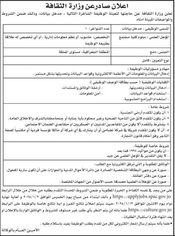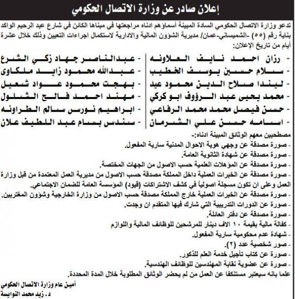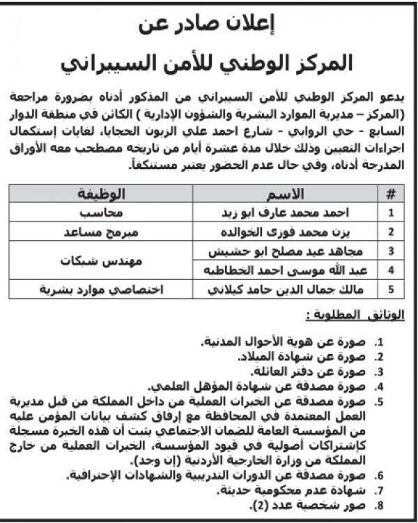 : أعلنت عدداً من المؤسسات الرسمية، اليوم الخميس، عن حاجتها لتعبئة وظائف شاغرة، فيما دعت أخرى مرشحين لاستكمال اجراءات التعيين آخرين للامتحان التنافسي.