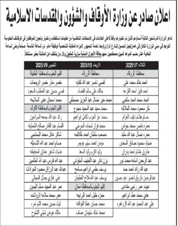 شواغر ومدعوون لاستكمال التعيين (أسماء)