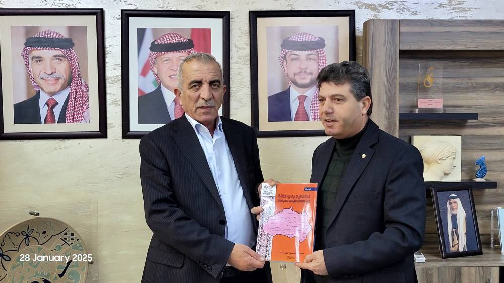 عبيدات بإهداء وزير الثقافة الأردني، مصطفى الرواشدة، كتابا يوثق فعاليات "احتفالية