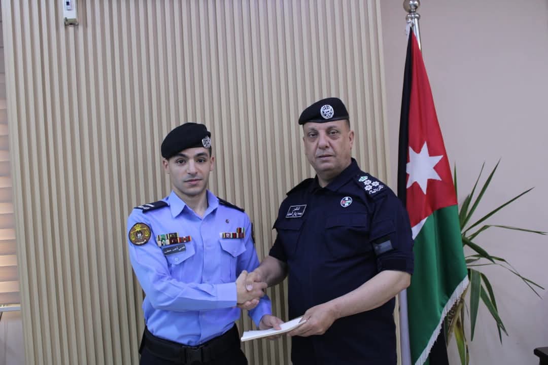 مدير شرطة محافظة البلقاء العميد الدكتور جمعة الحمايدة يكريم الوكيل قصي احمد خلف الفائز بجائزة (التميز الأمني لمرتبات مديرية الأمن العام لعام ٢٠٢٤) من مرتب مديرية الشرطة،والتي تحققت نتيجة عمله الدؤوب والمتميز في أداء الواجبات والمهام الموكلة إليه.
