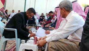 نيروز الإخبارية : الشيخ سعود الخرباش طلب.... كامل الكميان أعطى. نيروز الاخبارية....احمد السيد وخالد السمرين. توجهت الجاهه الكريمه من عشائر الجبور السمرين ووجهاء وأصدقائهم وأقاربهم اليوم الجمعة برئاسة الشيخ سعود بشير الخرباش الدهام الجبور بحضور كبار عشيرة الدهام إلى عشيرة الكميان لطلب يد صاحبة الصون والعفاف كريمة السيد خالد الكميان لابنهم السيد عبدالله السمرين الدهام الجبور وكان في استقبال الجاهه الكريمة وجهاء والأصدقاء والأقارب من عشيرة الكميان الدهام . وطلب باسم الجاهه الشيخ ابو رائد الخرباش الجبور فيما أعطى بأسم الكميان كامل الدهام ابو ماجد بحضور وجهاء من ابناء قبيلة بني صخر. “وكالة نيروز الاخبارية” تبارك للخطيبين وتتمنى لهم حياة ملؤهة السعادة والسرور ….الف مبروك.