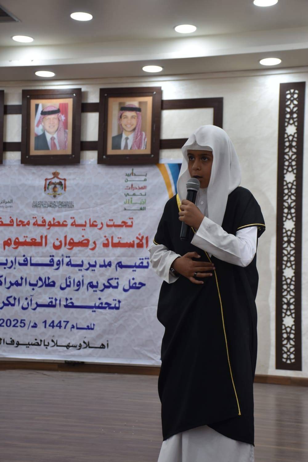 اليوم الخميس الموافق2025/8/28، احتفالاً تكريمياً لأوائل طلبة المراكز الصيفية لتحفيظ القرآن الكريم، وذلك في قاعة بلدية إربد الكبرى، تحت شعار المراكز الصيفية لهذا العام: "يداً بيد من المخدرات نحمي أجيال الغد".