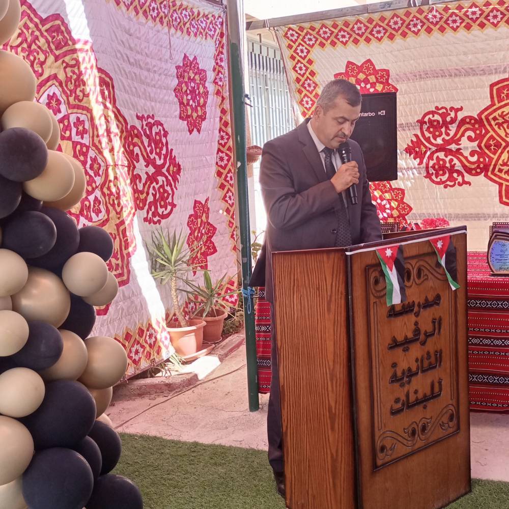 وقد تزين الحفل باستقبال مهيب أعدّته مديرة مدرسة الرفيد الثانوية الشاملة للبنات الفاضلة عيفة حمادنة، وبمشاركة الأستاذ عبدالرحمن عبيدات مدير مدرسة الرفيد الثانوية للبنين، وفرقة الكشافة والمرشدات التي أضفت على المشهد طابعاً وطنياً مهيباً، وكأنها تجسد حلم الطلبة وهم يسيرون نحو مستقبل مشرق.