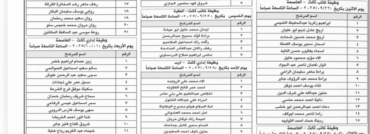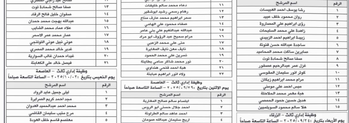 مدعوون لإجراء المقابلة الشخصية- أسماء