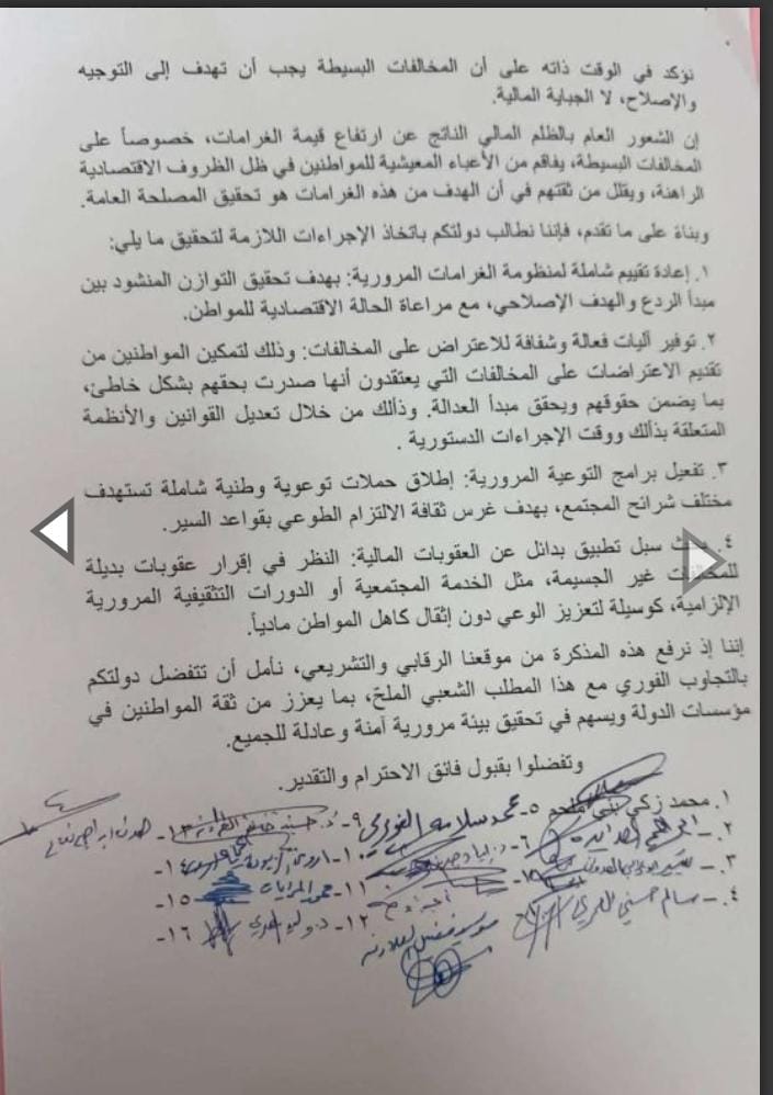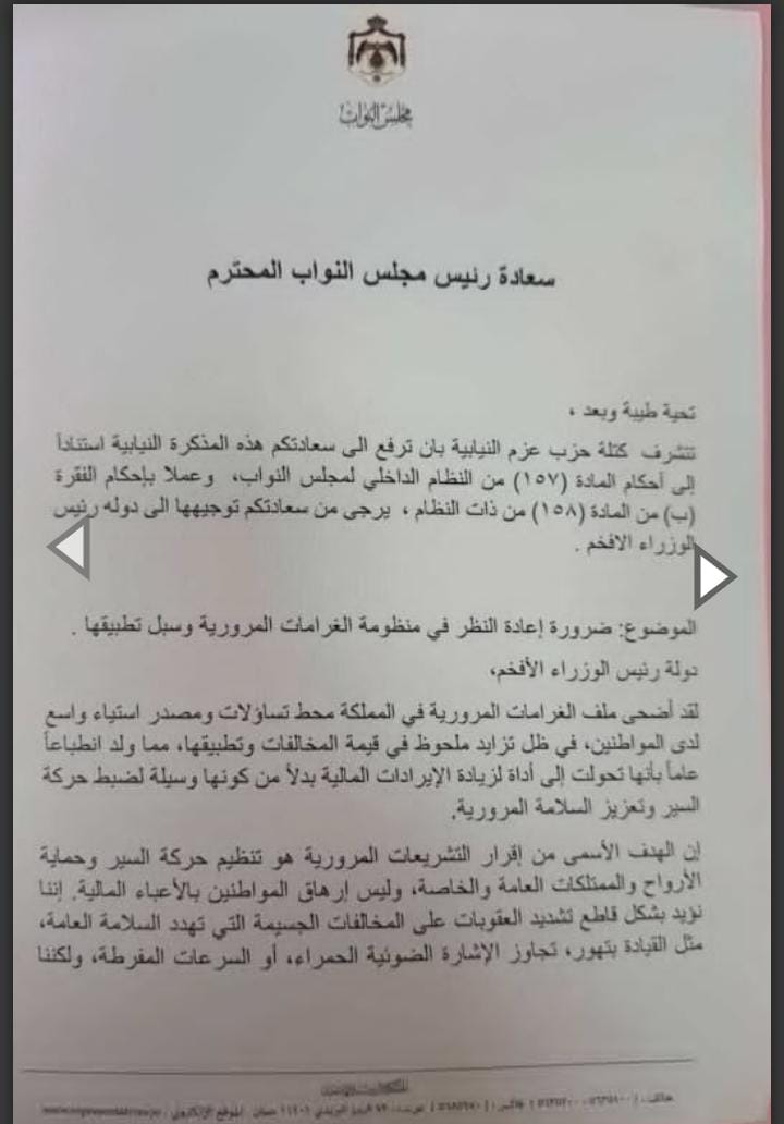 نواب يدعون لتقييم مخالفات السير- وثيقة