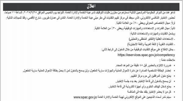 كما أعلنت مؤسسات اخرى عن اسماء المدعوين من مخزون ديوان الخدمة المدنية، لاجراء الامتحان التنافسي.